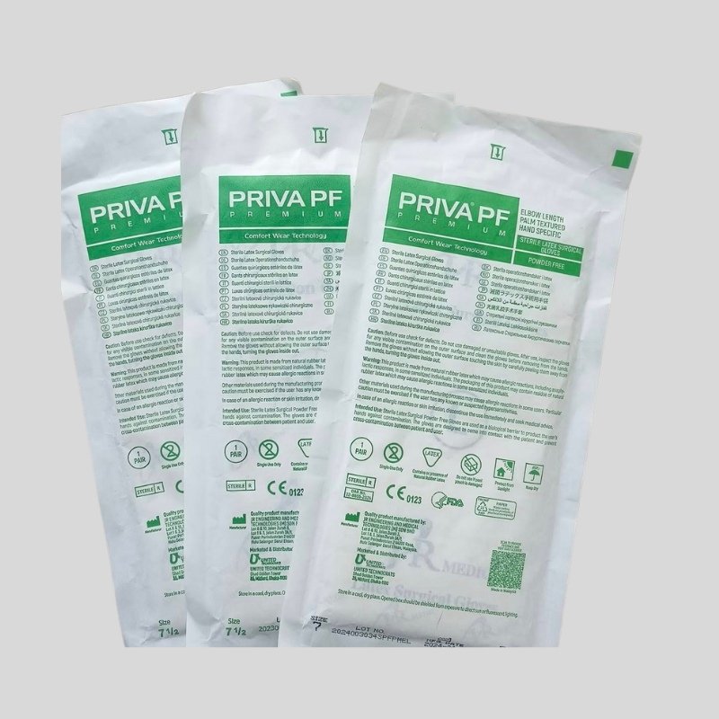 Priva PF Premium Surgical Gloves are high-quality sterile gloves designed for surgical and medical procedures requiring superior protection and tactile sensitivity. Manufactured in Malaysia by JR Engineering and Medical Technologies, these gloves are made from natural latex with an advanced powder-free process to minimize the risk of allergies and irritation. With palm textured surface and hand-specific design, they provide excellent grip, comfort, and safety for long hours of use in critical environments.